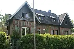Die drei Doppelwohnhäuser 2 bis 12 sind variationsreich gestaltet. Es handelt sich um ein- bis zweigeschossige Backsteinbauten mit Putzornamenten. In den Satteldächern sind Schleppgauben eingebaut. Die Giebelspitzen sind verschiefert. Die Fensteröffnungen sind segmentbogig. In den Fenstern sind größtenteils moderne Ganzglasscheiben eingesetzt.