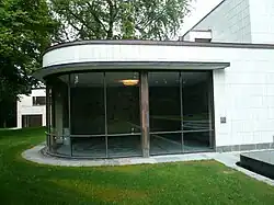 Ein Flur mit Fenstern führt zum zweiten Baukörper mit Turnsaal und Schwimmhalle, an die sich das Gartenzimmer mit einer runden Fensterfront anschließt. Nördlich des Flurs liegen die Hauswirtschaftsräume und ein Kinderspielzimmer mit einem Spielhof, durch eine überdachte Pfeilerreihe vom Grundstück abgesetzt. In den Freizeitbereich führt zusätzlich ein separater Eingang. Westlich von der Schwimmhalle lag ein durch eine Mauer vor Blicken abgeschirmtes Luftbad, das im Rahmen der späteren Umbauten überdacht wurde.
