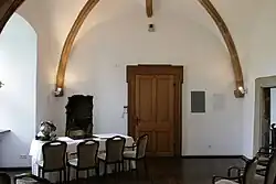 Im Erdgeschoss des Herrenhauses ist eine zweijochige, spätgotische Kapelle mit Kreuzrippengewölbe und barockem Taufbecken erhalten. Sie stammt aus der Zeit um 1500.[1]