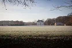 Das Herrenhaus besitzt über einem Sockelgeschoss zwei hohe Hauptgeschosse und neun Fensterachsen unter einem steilen, schiefergedeckten Walmdach. Das weiß verputzte Gebäude ist durch Lisenen vertikal gegliedert und weist einhergehend mit den Proportionen Ähnlichkeiten zum Schlößchen Borghees auf.[3]