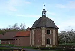 Im Südwesten schließt das Ökonomiegebäude (auch: Zehnthaus oder Remise genannt) an, das ebenfalls als massiver Steinbau angelegt wurde und dessen zwei Geschosse von einem Walmdach bedeckt sind. Die alten Stallungen sind inzwischen zu Wohnungen umgestaltet worden. Der alte Wachturm wurde 1835 abgebrochen, die Grundmauern sind aber noch deutlich sichtbar. Vom eigentlichen Schloss, also dem Herrenhaus, blieb ebenfalls kaum mehr als ein paar Gräben und Wälle im Gelände übrig. Von der barocken Gartenanlage im französischen Stil haben sich ein paar kleine Teiche erhalten; die ursprüngliche regelmäßige Anlage des 190 Hektar großen Parks, der in nordwestlich-südöstlicher Richtung orientiert ist, ist aber gut erkennbar.