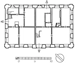 Der zweigeschossige, massive Bruchsteinbau weist an seinen Längsseiten sieben, an den Schmalseiten vier Fensterachsen auf und wird von einem ebenfalls zweigeschossigen Mansarddach gedeckt. Neben dem gegliederten Dach (5 zu 2 und 3 zu 1 Fensterachsen) sind besonders die kräftigen kannelierten Ecklisenen auffällig. Der Eingang an der westlichen Langseite befindet sich in einem spitzgiebelig bekrönten, einachsigen Mittelrisalit. Über der schlichten Haustür findet sich das steinerne Allianzwappen der Familien Omphal und Neuhoff. Dieses Motiv wiederholt sich auf dem Dach in zwei Wetterfahnen mit den gleichen Wappen und der Jahreszahl 1733. Haupt- und Nebengebäude sind unverputzt.