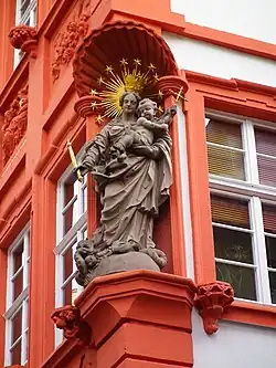 Das dreigeschossige Haus mit Mansardpultdach befindet sich in der östlichen Hälfte der Hauptstraße, der wichtigsten Straße in der Heidelberger Altstadt, an der Ecke zur Kettengasse, wobei die dreiachsige Schaufassade zur Hauptstraße und die langgezogene, achtachsige einfacher gehaltene Fassade zur Kettengasse ausgerichtet ist. Blickfang des Gebäudes ist die Madonna an der Ecke des ersten Obergeschosses. Sie stammt wohl vom Bildhauer Peter van den Branden, der auch die Kornmarkt-Madonna geschaffen hat. Heute steht hier eine Kopie, die Original-Madonna befindet sich im Kurpfälzischen Museum Heidelberg. Außergewöhnlich für die Erbauungszeit sind die Reliefs an der Fassade, die die Dreifaltigkeit darstellen, und zwei Inschriften: „Alle Stund und Zeit sei gelobt die heilige Dreifaltigkeit“ und „Wer Gott verdraut hatt wohl Gebaut“. Das prachtvolle Bürgerhaus zeugt von der katholischen Frömmigkeit des Bauherrn während der Gegenreformation in Heidelberg.