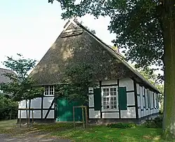 Das eingeschossige zeitweise verputzte Fachwerkhaus, ein niederdeutsches Hallenhaus als Zweiständerhaus mit einem Reetdach und Pferdekopfverzierungen an der Giebelspitze sowie einem großen Scheunentor in einer damals üblichen Bauweise, wurde um 1780 in der Epoche des Barocks für eine Brinksitzer-Bauernfamilie gebaut. Brinksitzer waren von einem Grundherrn abhängig und besaßen nur wenig frei verfügbares Land.