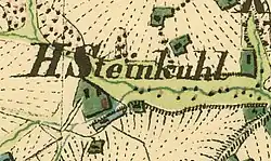 Haus Steinkuhl lag auf dem heutigen Sportplatzgelände „Auf der Heide“. Das von Johann Friedrich von Omphal im 17. Jahrhundert neu errichtete Gebäude war von zwei Türmen flankiert und besaß Verbindungen zu den Wirtschaftsbauten, zu denen ein Bauhaus gehörte[8]. Eine hohe Ringmauer und ein noch im 19. Jahrhundert existierender Wassergraben schützten das Anwesen. Eine Brücke führte über den Graben zu einem strohgedeckten Torhaus.[4]