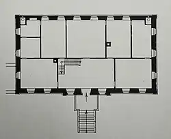 Das Haus ist ein einstöckiger, siebenachsiger Bau auf einem hohen Kellergeschoss. Durch das Hauptgesims geht ein dreiachsiger Mittelrisalit mit einem Dreiecksgiebel als Dachaufbau. In die Mittelachse ist ein Portal mit Pilastern und verkröpften Schweifgiebel- und Gesimsstücken eingelassen. Darunter ein Doppelwappen der Familie Gaugreben-Meschede und eine Kartusche mit der Inschrift: M:M:fra von Gaugreben geborne von Meschede hatt dies haus Ao 1717bauen lassen. Die Architekturteile sind aus Kalkstein, ansonsten wurde Bruchsteinmauerwerk verputzt. Das Pfannendach wurde im 20. Jahrhundert erneuert. Zum Portal führt eine große Freitreppe mit einer Brüstung aus Rüthener Sandstein. Darunter befindet sich der Kellereingang. Das Haus ist mit einem umlaufenden Sockelgesims ausgestattet.[2]