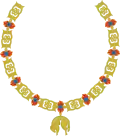 Das Wappen des Adelsgeschlechtes Zúñiga war ursprünglich: im roten Feld, ein Band in Gold.[8] Der König von Navarra Sancho VII. „der Starke“ stürmte in der Schlacht bei Las Navas de Tolosa (16. Juli 1212) mit seinen Rittern aus Navarra die Einzäunung, gebildet durch die „Schwarze Garde“, die angekettet den menschlichen Verteidigungswall des Almohaden-Kalifen Muhammed al-Nasir, bekannt als Miramamolin, bildete. Im feierlichen Gedenken dieses Sieges änderte er sein Wappen, das vorher einen schwarzen Adler („arrano beltza“ en Euskera) zeigte. Er führte nun auf rotem Feld eine Kette mit acht Gliedern in Gold (Gelb) als Borde und einen Smaragd im Zentrum. Die Kette stellt die, durch die „Schwarze Garde“ gebildete, Einzäunung dar, und der Smaragd dient als Symbol des Kalifen, bekannt durch den Beinamen „der Grüne“.[9][10][11][12]