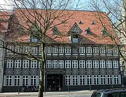 Das Haus wurde 1567 von dem Knochenhauer und Ratsherrn Cyriakus Haberland (Haverland) als Wohn- und Geschäftshaus erbaut.[1] Aus dieser Zeit stammen die Bandfries-Schnitzereien an den Balken. Die Fassade wurde 1869 im Stil der frühen Renaissance verändert.