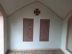 - Historisches Ehrenmal von 1926 für die Gefallenen beider Weltkriege (1955 mit einer zweiteiligen Tafel erweitert)[23][24][25]