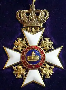 Nach einer Statutenergänzung vom Februar 1916 konnten den Ordensinsignien der Klasse I. die Schwerter hinzugefügt werden.