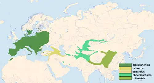 - Phoenicurus ochruros gibraltariensis (J. F. Gmelin, 1789): Diese Unterart besiedelt Europa und Nordwest-Afrika. Das Aussehen entspricht obiger Beschreibung.