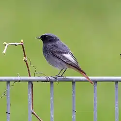Der Hausrotschwanz (Phoenicurus ochruros) ist eine Singvogelart aus der Familie der Fliegenschnäpper (Muscicapidae). Er ist etwas kleiner als der Haussperling und vor allem an seinem rostorangen Schwanz und dem ansonsten dunklen Gefieder zu erkennen.