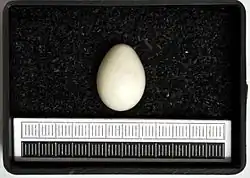 Die spitzovalen Eier sind reinweiß, nur selten zart hellblau angehaucht. Im Mittel messen sie ungefähr 20 × 15 Millimeter und wiegen etwas über zwei Gramm. Wie bei den meisten Singvögeln findet die Eiablage vorwiegend in den frühen Morgenstunden statt, jeweils mit einem Tag Abstand. Das durchschnittliche Vollgelege enthält fünf Eier. Die Gelegegröße zeigt in Europa nur geringe saisonale, geografische und höhenabhängige Variation. Am zweithäufigsten sind Vierergelege, Sechsergelege sind seltener, aber noch normal.[35]