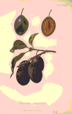 Die Früchte sind klein, die Farbe der Schale ist blaurot bis blauschwarz und das Fruchtfleisch ist gelbgrün bis orange. Die Frucht weist ein ausgeglichenes Verhältnis von Süße und Säure auf und besitzt ein ausgeprägtes Zwetschgenaroma. Die Früchte reifen Mitte bis Ende September.