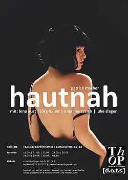 Hautnah ist ein Theaterstück von Patrick Marber, das 2004 von Mike Nichols auf der Basis von Marbers Drehbuch als Hautnah verfilmt wurde. Das Stück hatte am 15. März 1999 seine Premiere im Music Box Theater am Broadway in New York City mit Anna Friel als Alice, Rupert Graves als Dan, Ciarán Hinds als Larry und Natasha Richardson als Anna. Es wurde 172-mal aufgeführt und wurde 1999 für den Tony Award als bestes Theaterstück nominiert.[1] Hautnah wurde auch im deutschsprachigen Raum in vielen Städten gespielt.