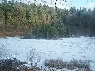| Der vereiste Hautsee mit seiner schwimmenden Insel im Januar 2009. | ||