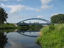Ehemalige Feldwegbrücke mit zwei Pfeilern im Kanal.[10] Die alte Brücke wurde abgerissen und durch einen Neubau (siehe Nummer 11) ersetzt. |