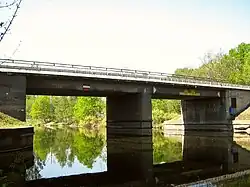 Ehemalige Zweifelderbrücke mit Mittelpfeiler von 1952. Brückenneubau 1999, die Priorter Straße (Kreisstraße 6305) führt über die Brücke. | Karten | |