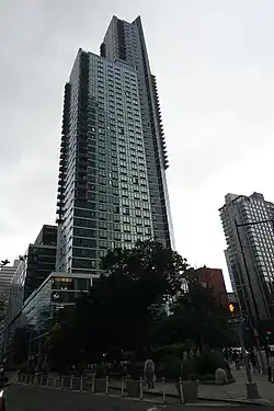 Das Bauwerk besteht aus mehreren Gebäudeteilen in einer L-förmigen Anordnung mit unterschiedlichen Höhen und Stockwerken. Der höchste und abgestuft bis zu 50-stöckige Turm steht an der 44th Drive zwischen der Jackson Avenue und Hunter Street. Er hat eine zweimal mit 45° abgewinkelte Gebäudestruktur und eine blaue Glasfassade. Anschließend erstreckt sich entlang der Hunter Street das zweite 15-stöckige Gebäude bis zur 43rd Avenue. Beide Gebäude verbindet ein gemeinsamer fünfstöckiger Sockel. Die oberen Etagen besitzen teilweise vertikal angeordnete Balkone an den Gebäudeecken.