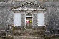 Es besteht aus einem Hauptblock mit 5 x 3 Jochen und drei Stockwerken, sowie zweistöckigen Anbauten auf beiden Seiten mit einstöckigen Verbindungsstücken. Das Gebäude ist aus Kalk-Werkstein erbaut und hat Schieferdächer.[1]