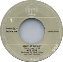 Stiff-Records-Gründer Dave Robinson und sein Partner, Nick Lowes Manager Jake Riviera, buchten für die Aufnahmen für 45 £ die Pathway Studios im Norden Londons. Hier nahm Nick Lowe nur mit Hilfe von Schlagzeuger Steve Goulding von der Band The Rumour zwei Songs auf, eben Heart of the City und So It Goes – eigentlich nur als Demos gedacht, aufgenommen in drei Stunden Studiozeit.[2] Gitarre und Bass spielte Lowe selbst. Produzenten waren Lowe und Riviera gemeinsam,[3] Toningenieur war Barry Farmer, der auch später auf vielen Stiff-Records-Labels- und -Covers mit seinem Spitznamen Bazza auftaucht. Die beiden Songs wurden als A- und B-Seite der Single veröffentlicht. Sie wurde „zwar kein Hit, weckte aber ein gewisses Interesse innerhalb der Branche“.[4]