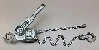 Hebelzüge sind vom Prinzip her immer gleich aufgebaut. Über einen Hebel wird ein Drehmoment auf eine Antriebswelle übertragen. Mittels unterschiedlich großer Hebellängen, Getriebeübersetzungen und Laststrangeinscherungen können Tragkräfte von bis zu 9.000 kg erreicht werden. Hierbei wird die Last von einer so genannten Lastdruckbremse gehalten.