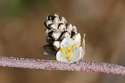Die Blütenstiele sind kurz. Die funktional eingeschlechtigen Blüten sind radiärsymmetrisch und dreizählig mit doppelter Blütenhülle. Die drei Kelchblätter sind frei. Die drei Kronblätter sind weiß, grün, gelb oder selten rosafarben. Die männliche Blüten enthalten zwei Kreise mit je drei Staubblättern. Die weibliche Blüten enthalten einen oberständigen oder halboberständigen Fruchtknoten.
