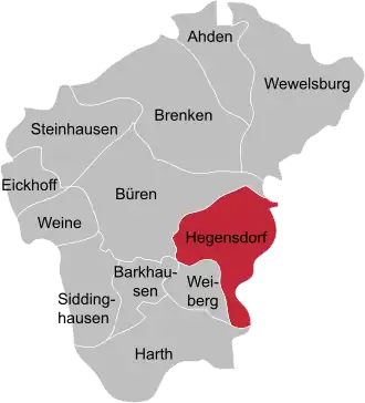 ![]() Lage von Hegensdorf in Büren