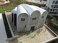 - ↑ a b c d e Naʿomi Simchony (נָעֳמִי שִׂמְחוֹנִי englisch Naomi Simhony), “Exceptionally Jewish: Israeli Synagogue Architecture in the 1960s and 1970s” (12. Februar 2020), in: Arts, MDPI (Hrsg.), Jg. 9 (2021), S. 1–19, hier S. 11.