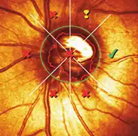 Die Form des Sehnervenkopfes verändert sich mit Fortschreiten des Glaukoms. Das System klassifiziert ein Auge mit Methoden der künstlichen Intelligenz anhand der Papillenform und der peripapillären retinalen Nervenfaserschicht.[5] Folgende Strukturen gehen in das Modell ein:
