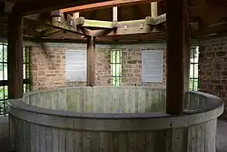 Als man die Abschlussplatte hob, zeigte sich darunter eine zweite Sohle, die aus möglicherweise römischen Ziegellagen bestand. Aufgrund dieser Sohle wurden die Römer als die Erbauer des Schachtes vermutet.