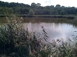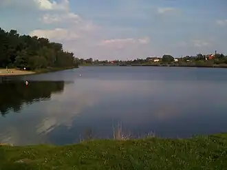 Tagebaurestloch, heutige Nutzung als Freibad | |