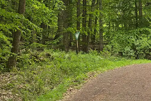 ![]() Ein Eingang von einem Waldweg zum Naturschutzgebiet Heidhübel | ||