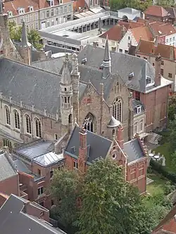 Die Heilig-Blut-Basilika in Brügge schließt südwestlich an das Rathaus an. Beide stehen östlich des Marktplatzes Grote Markt auf dem Gelände der im 9. Jahrhundert errichteten Grafenburg, nach welcher der Burgplatz benannt ist. Die Kirche ist heute das älteste Gebäude auf dem ehemaligen Burggelände. Die Doppelkirche besteht aus der Basiliuskapelle als Unterkirche und einer Oberkirche. Der Sakralbau ist Aufbewahrungsort einer der bedeutendsten Reliquien Europas, einer Heiligblut-Reliquie.[1] Seit 1923 hat sie den Rang einer Basilica minor.[2]