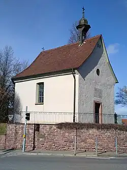 Die Kapelle wurde Ende des 17. Jahrhunderts erbaut. Ihr Langhaus ist im Westen dreiseitig abgeschlossen. Aus dem Dach erhebt sich ein offener, mit einer Glockenhaube bedeckter Dachreiter, in dem eine kleine Kirchenglocke hängt. Zur Kirchenausstattung gehört ein Altarkreuz, das um 1490 von Michel Erhart geschaffen wurde, und von spätbarocken Statuen der Maria und des Johannes Evangelist flankiert wird.
