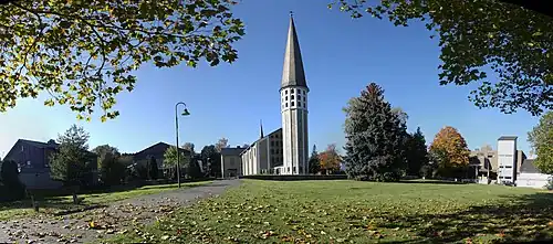 Das römisch-katholische Gotteshaus wurde im Jahre 1961 dem Heiligen Kreuz geweiht, sein Architekt war Heinrich Stiegemann.