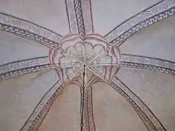 Das Triumphkreuz aus dem 16. Jahrhundert hing zunächst vom Gewölbe herab; bei der Restaurierung 1842 wurde es auf seinen jetzigen Platz nördlich gebracht. Hier sind auch die ältesten Malereien im Gewölbe zu finden, sie stammen vom Ende des 14. Jahrhunderts und zeigen den Kampf zwischen St. Jürgen (Georg (Heiliger)) und dem Drachen sowie Petrus als Papst. Andere Gewölbemalereien stammen aus dem 16. Jahrhundert.