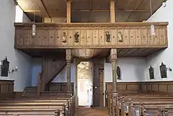 An der unteren Emporenbrüstung befinden sich vier Statuetten des Bildhauers Hans Haldner, die ursprünglich Teil des Chorgestühls des Klosterkirche Tegernsee waren. Neben weiteren Schnitzwerken der Spätgotik sind eine Madonnenfigur aus dem 14. Jahrhundert sowie eine thronende Figur des heiligen Ulrich, die als ein Hauptwerk des sogenannten „Meisters von Rabenden“ gilt, von besonderem Interesse.[1]