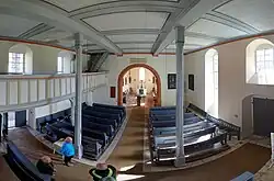 - Bis 1977 gab es nachweislich keine Orgel in der Kirche, dann wurde durch eine Stiftung eines Gemeindemitgliedes der Bau einer kleinen, aber klangschönen Orgel ermöglicht. Das Instrument wurde durch Orgelbau Schönefeld aus Stadtilm auf der Westempore aufgestellt.[11]