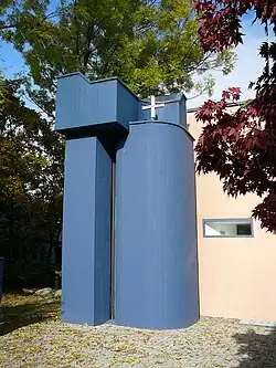 Eine Auffälligkeit des Pfarreizentrums Heilig Geist besteht darin, dass der Kirchturm niedriger ist als das Kirchengebäude. Der Grund hierfür ist, dass erst nach Eingabe des Baugesuchs entschieden wurde, neben der Kirche noch einen Kirchturm zu errichten. Eine erneute Baueingabe samt höherem Kirchturm hätte den Bau der Kirche weiter hinausgezögert, weshalb darauf verzichtet wurde. Im Kirchturm befindet sich ein Geläut aus drei Bronzeglocken, das 1973 von der Glockengiesserei H. Rüetschi in Aarau gegossen und am 30. Juni 1973 geweiht wurde.[21] Die Glocken wurden im engen Kirchturm übereinander angeordnet.