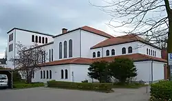 Die Kirche wurde in Form einer dreischiffigen Basilika mit Turmriegel[3] aus Bims aus dem Neuwieder Becken auf einem Skelett aus Beton erbaut. Fenster und Schalllöcher sind rundbogig. Ein Querhaus trennt die Sonntagskirche im Nordosten von der Werktagskirche im Südwesten. Das Portal befindet sich im Turmriegel. Nach Westen ist die Sakristei mit Nebenräumen angebaut, nach Osten das Gemeindezentrum.[4]