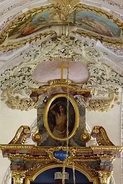 Die Deckengemälde stammen aus der Zeit der Umgestaltung des Innenraums und werden in das Jahr 1832 datiert. Auf ihnen sind Moses dargestellt, der Sieg Konstantins auf der Milvischen Brücke und die Geburt Christi.