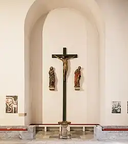 Ursprünglich gab es in der Altarnische einen hohen Altarblock, der von einem gekrönten Baldachin umfasst war. Dieser wurde 1937 durch eine Kreuzigungsgruppe ersetzt.[2] Ab 1966 wurde der Chor den Anforderungen des Zweiten Vatikanischen Konzils gemäß umgestaltet.
