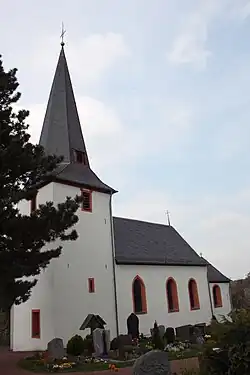 Bereits 1266 wird die Kirche in „Wingardin“ im Besitz des Klosters Münstereifel, ein Tochterkloster der Abtei Prüm, genannt. Die ältesten Teil der heutigen Kirche, der Turm und der Chor, stammen aus dem 14. Jahrhundert. Im 17. und 18. Jahrhundert wurde das Langhaus teils umgebaut bzw. neu errichtet.