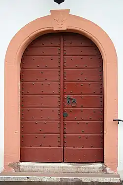Die Tür aus Eiche stammt vermutlich aus dem 17. Jahrhundert. Im Vorraum befindet sich die Treppe zur Orgelempore, ebenfalls aus dem 17. Jahrhundert, die sich ursprünglich im Kirchenraum befand. Im Seitenschiff befindet sich die so genannte Taufnische. Diese flachbogige Nische mit Fensteröffnung ist vor dem Umbau der Eingang gewesen.