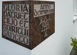 Der Grundstein erhielt die Inschrift „Gloria Patri et Filio et Spiritui Sancto“ („Ehre sei dem Vater und dem Sohn und dem Heiligen Geist“) und wurde im Jahr 1999 gelegt. Die Kirchweihe konnte am 23. Juli 2000 gefeiert werden, die Festrede hielt Weihbischof Norbert Werbs.[1]