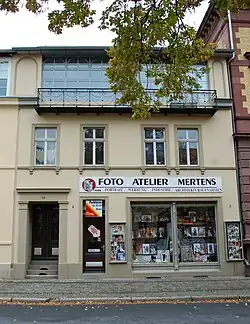 Das Gebäude wurde 1893 durch den Maurermeister Robert Riefenstahl erbaut. Die Fassade ist sparsam im Stil des Spätklassizismus gestaltet. Türen und Fenster des Hauses stammen noch aus der Bauzeit. Im Erdgeschoss des Hauses befindet sich ein Ladengeschäft. Bemerkenswert ist das im Dachgeschoss befindliche Fotoatelier, das straßenseitig über eine große Fensterfront hinter einer schmiedeeisernen Galerie verfügt.