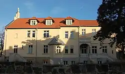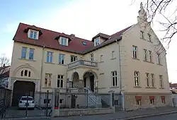 Der Grundriss der zweigeschossigen, auf einem hohen Sockel errichteten Villa weist eine Winkelform auf. In den Jahren 1902/03 erfolgte ein Umbau und eine Erweiterung des Hauses zur Nutzung als Arztpraxis und Wohnhaus. Die Gestaltung der Villa erfolgte im Stil des Historismus, wobei man sich an Renaissanceformen orientierte. Bemerkenswert ist die Eingangshalle sowie die an der Ostseite befindliche Durchfahrt.