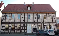 Das zweigeschossige Fachwerkhaus entstand in der Zeit um das Jahr 1800 und diente zunächst als Schule. Die streng symmetrisch gestaltete Fachwerkfassade verzichtet weitestgehend auf Verzierungen. Ihre Gliederung erfolgt durch eine siebenachsige Aufteilung der Fenster und der mittig angeordneten Haustür. Bedeckt ist das Gebäude von einem Satteldach. Oberhalb der Haustür befindet sich auf dem Dach mittig eine einzelne kleine Dachgaube.