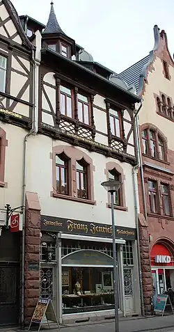 Das Haus wurde im Jahr 1904 durch den Architekten Max Schneck für Franz Jenrich gebaut. Noch heute (Stand 2012) befindet sich im Erdgeschoss das Juweliergeschäft Franz Jenrich. Bemerkenswert ist die gut erhaltene Ladenfassade mit Anklängen an den Jugendstil. In der Gestaltung der oberen Geschosse werden an Lukarne und Vorhangbogen Formen aus Gotik und Renaissance in abgewandelter Form zitiert. Der Einsatz von Fachwerkelementen im oberen Bereich erfolgte auf Drängen des städtischen Bauamts.[1]
